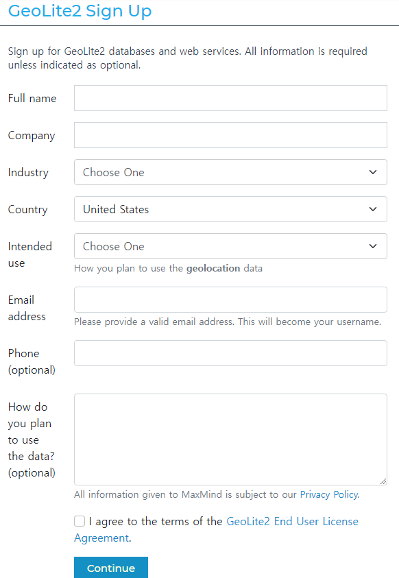 LicenseKey [MaxMind 회원가입시 제공하는 LicenseKey]
