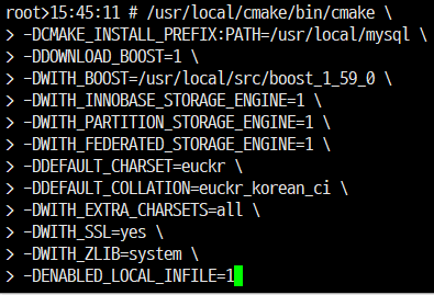 일시적으로 허용 값을 올린 상태로 지속적인 적용을 위해 my.cnf 에 설정 변경 # vi /etc/my.cnf