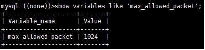 mysql> show variables like 'max_allowed_packet'; -> 현재 설정값 확인(byte 단위)